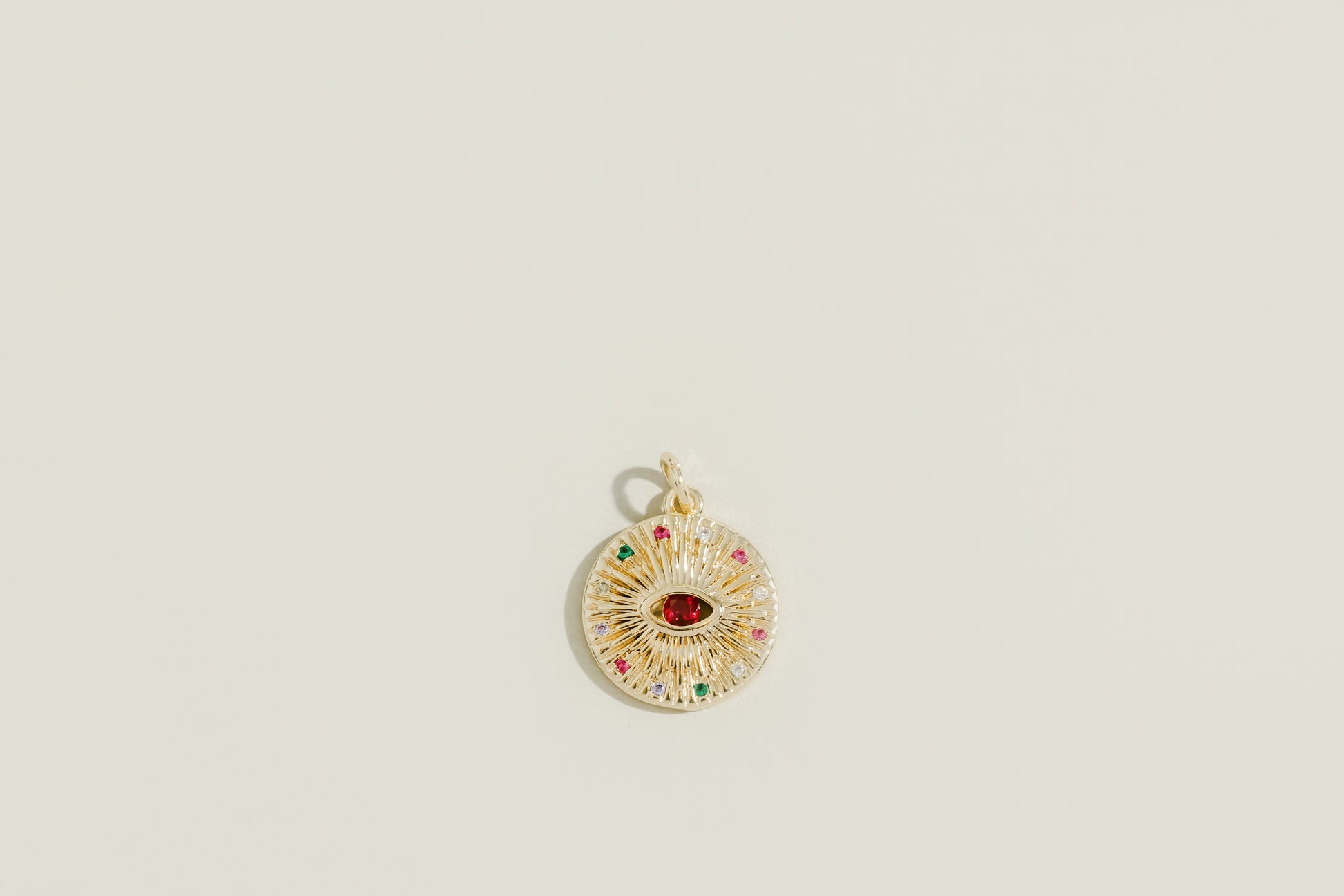 Colourful semi-precious gemstones on gold plated eye charm